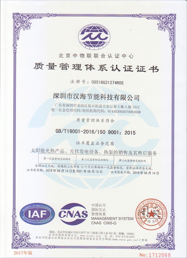 深圳市漢海節(jié)能科技有限公司成立于2011年,注冊(cè)資金6000萬(wàn)元,總部設(shè)在深圳,是一家集設(shè)計(jì)、研發(fā)、施工于一體的專業(yè)化從事太陽(yáng)能中央熱水工程、熱泵中央熱水工程、中央空調(diào)、光伏發(fā)電、水處理等新能源及節(jié)能環(huán)保行業(yè)的綜合服務(wù)商和工程商。在將近10年的發(fā)展歷程中,始終走在行業(yè)發(fā)展的前沿,是專業(yè)從事太陽(yáng)能光熱、光伏,空氣源、太陽(yáng)能熱水工程、水源熱泵,中央空調(diào),水處理產(chǎn)品的設(shè)計(jì)、安裝、售后服務(wù)為一體的高新技術(shù)企業(yè);是專業(yè)提供太陽(yáng)能中央熱水工程、熱泵中央熱水工程、中央空調(diào)工程、光伏發(fā)電工程、水處理工程、太陽(yáng)能熱水工程等全面解決方案的供應(yīng)商和工程商,產(chǎn)品涵蓋太陽(yáng)能集熱器、空氣源熱泵、水源熱泵、中央空調(diào)、光伏組件、太陽(yáng)能熱水工程等,是新能源的倡導(dǎo)者和推動(dòng)者。公司成立以來(lái),始終秉承“誠(chéng)信、責(zé)任、專業(yè)、高效”的服務(wù)宗旨,以市場(chǎng)需求為導(dǎo)向,以為客戶創(chuàng)造價(jià)值為己任的精神,不斷開(kāi)拓創(chuàng)新,通過(guò)多年的快速發(fā)展,公司綜合實(shí)力躍居行業(yè)前列。漢海擁有一支經(jīng)驗(yàn)豐富、善打硬仗的專業(yè)高效團(tuán)隊(duì);擁有一批專業(yè)的高級(jí)工程師、中級(jí)工程師、二級(jí)建造師、造價(jià)工程師、電氣設(shè)計(jì)師、給排水設(shè)計(jì)師;擁有一批機(jī)電、安防、水、電等專業(yè)技術(shù)施工和售后人員,配備先進(jìn)齊全,實(shí)力雄厚,技術(shù)領(lǐng)先。漢海以質(zhì)量樹(shù)信譽(yù)、以工藝立標(biāo)桿、以管理創(chuàng)效益、以服務(wù)得人心,工藝水平在業(yè)界獨(dú)樹(shù)一幟,成為行業(yè)模仿的典范。漢海承建的機(jī)電工程(設(shè)計(jì)、施工)涉及星級(jí)酒店、賓館、高檔辦公樓、花園別墅、住宅小區(qū)、學(xué)校、水療中心、工廠等各種類型的工程,工程項(xiàng)目遍布全國(guó)各地。漢海將致力于成為全球信賴的新能源綜合服務(wù)商,為客戶提供新能源的全方位解決方案。未來(lái),漢海將依托國(guó)家政策,積極開(kāi)拓粵港澳大灣區(qū)、中國(guó)特色社會(huì)主義先行示范區(qū)市場(chǎng)及“一帶一路”沿線國(guó)際市場(chǎng),推動(dòng)新能源的新輝煌。