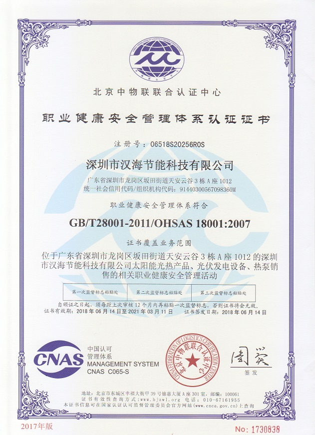 “職業(yè)健康安全管理體系認(rèn)證證書(shū)”資質(zhì)